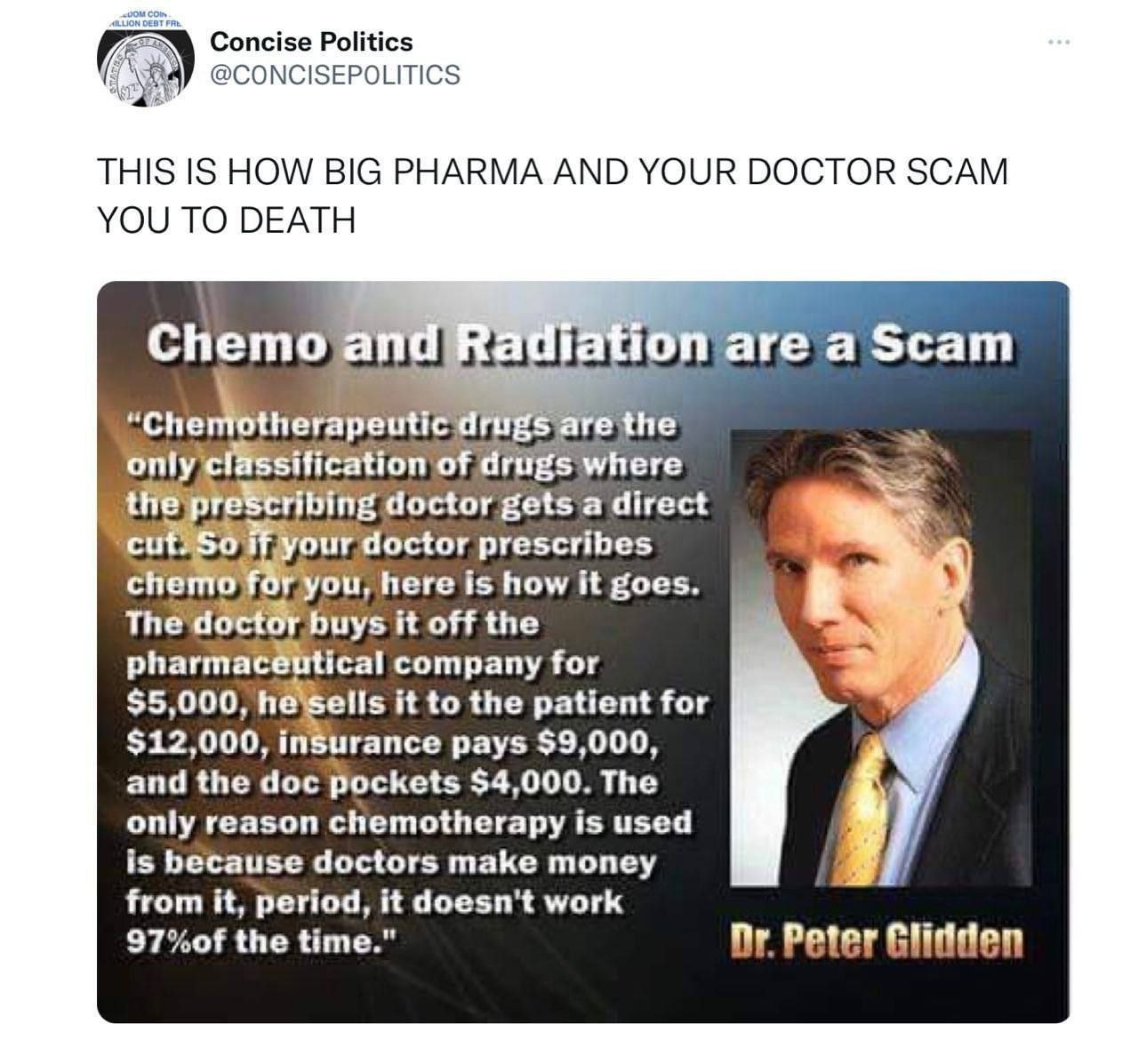 „Chemotherapie als ‚Therapie‘ zu verkaufen, ist wahrscheinlich der größte Betrug in der Geschichte der #Medizin. Wer auch immer diese Chemo-Folter geplant hat, verdient ein Denkmal in der Hölle.“