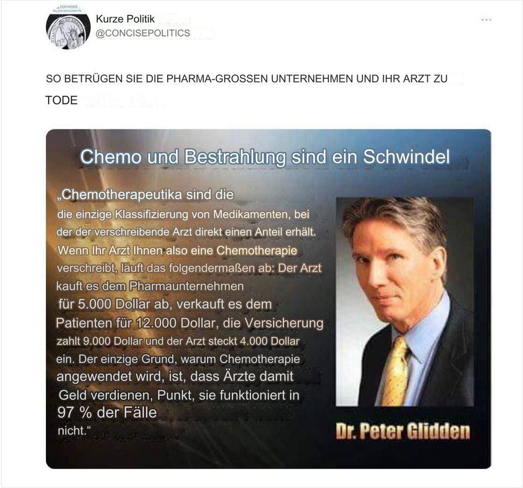 „Chemotherapie als ‚Therapie‘ zu verkaufen, ist wahrscheinlich der größte Betrug in der Geschichte der #Medizin. Wer auch immer diese Chemo-Folter geplant hat, verdient ein Denkmal in der Hölle.“